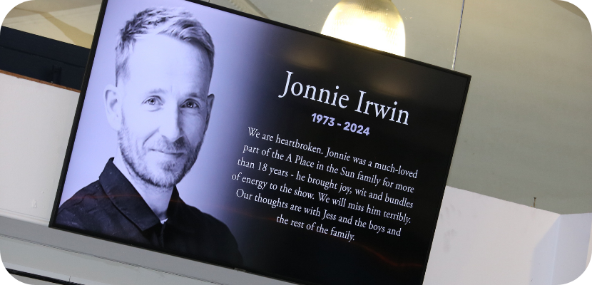 The exhibition was dedicated to the memory of Jonnie Irwin, who sadly passed away on Friday 2nd February. Jonnie was a valued member of the A Place in the Sun family, and an integral part of the success of A Place in the Sun Live over the last two decades. Jonnie's longterm co-presenter and friend Jasmine Harman paid tribute to Jonnie on stage on both days of the exhibition, sharing a memory of meeting him for the first time in South Africa while auditioning for the show.