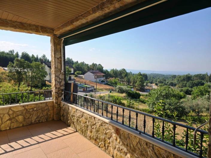 Outside, the property benefits from two independent entrances — one facing east and the other west — and a large parking area paved with traditional Portuguese cobblestone. The well-maintained garden features a fully automated and timed irrigation system, supplied by a 5,000-liter water reservoir. There is also space for a small vegetable garden and several fruit trees.