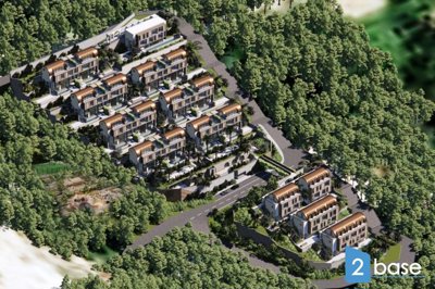 Day One Resort is a 2024-built holiday complex in Alanya North, featuring eighteen three-storey buildings across a 6008 sqm plot. Shared facilities include indoor and outdoor pools, a fitness centre, Turkish bath, and landscaped gardens in a hillside setting with mountain views.