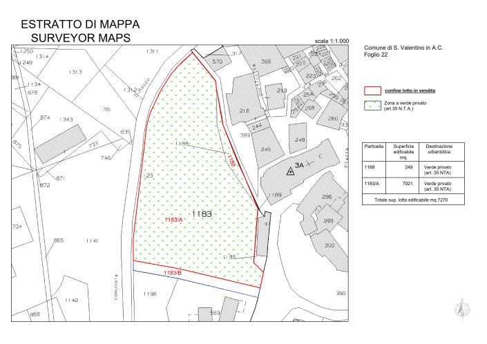 Land for sale of approximately 7,270 sqm on the edge of the historic center of San Valentino in Abruzzo Citeriore with a wonderful view of the Laga-Gran Sasso mountains and Morrone. Located in a "private green" area, it has an excellent south-west exposure, slightly sloping, with easy access from the municipal road, in a completely urbanized area. Structures can be built such as agricultural outbuildings, tool and machinery shelter, and silos for approximately 109.05 square meters for agricultural-farming activities. In a quiet but strategic position, near the historic center, which can be reached on foot in a few minutes, where one can find bars, pizzerias, restaurants, food and other shops, greengrocers, butchers as well as a pharmacy, bank and post office. It is perched on a gentle hill with enviable scenery, halfway between the sea and the Majella mountains declared a Unesco World Geopark. About 30 minutes' drive from Pescara international airport and the Adriatic Sea with its golden beaches, 20 minutes from the ski resort of Passolanciano, 10 minutes from the spa town of Caramanico Terme and 2 hours from Rome.