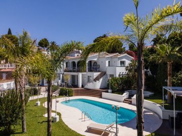 Pour ceux qui préfèrent l'ombre, la villa dispose également d'une terrasse couverte confortable, parfaite pour savourer une tasse de café le matin ou profiter des dîners en plein air pendant les soirées fraîches. La vue lointaine sur la mer est un atout supplémentaire de cette propriété prestigieuse, qui ajoute à l'attrait général et au caractère unique de la villa.
