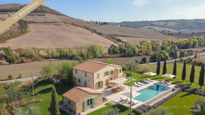 Tuscan farmhouse with annex, to be fully restored and restyled, with over 51 acres of land, near San Casciano dei Bagni, Siena. Once built for farmers' use and abandoned for a long time, this farmhouse is a property to dream about and convert into a charming country villa with endless views over the Tuscan landscape. The main building is on two levels with old stables and warehouses on the ground floor, on the first floor the farmer's residence, totaling 576 sq m/6200 sq ft of surface. Facades can be kept in local brick or restyled. Slightly detached from the main building is a former stable building to be converted into a guest cottage or pool house. Apolloni & Blom is at your complete disposal with a local network of professionals and constructors to support you from the design to full turnkey realization! The property includes more than 51 acres (20.7 hectares) of arable land and a vegetable garden equipped with a drip irrigation system. In a dominant position close to the municipality road, with open views of the hills and the borgo of Celle sul Rigo, just 4 km away, an unspoiled countryside on the border between Tuscany, Umbria, and Lazio. PROPERTY Ref: SAN2803Location: San Casciano dei Bagni, Province: Siena, Region: TuscanyType: 576 sq m/6200 sq ft two-story former farmhouse with annex, in need of full restoration, over 20 ha/51 acres of agricultural landAnnex: 62 sq m/667 sq ft barn on one levelYear of construction: 1900Conditions: to be restoredLand/Garden: 20.7 hectares/51.15 including arable land and 3.7 ha/9.1 acres of vegetable garden equipped with a drop irrigation systemLayout: