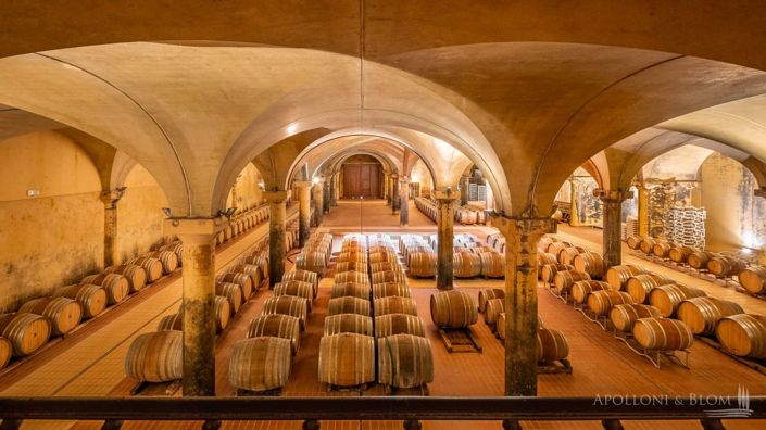 Stone-built thousand-year-old hamlet with 335-acre organic wine farm and winery with cellar for sale in Castellina in Chianti, Siena. Perched atop the undulating hills of Chianti Classico, this thousand-year-old stone hamlet offers a rare convergence of provenance, scale, and viticultural excellence. Located in Castellina in Chianti, one of Tuscany’s most esteemed wine territories, the estate spans 335 acres (135.6 hectares), encompassing vineyards, olive groves, woodlands, and an architecturally refined wine production facility. Eighty-two acres (33 hectares) are under vine, planted predominantly with Sangiovese alongside select international varietals including Merlot, Petit Verdot, Cabernet Sauvignon, Sauvignon Blanc, and Chardonnay. For over four decades, the current owners have devoted themselves to elevating the estate’s enological identity—restructuring the vineyards, implementing modern winemaking techniques, and attaining full organic certification in 2009. The estate now produces approximately 75,000 bottles annually, with 75 percent of its output distributed to established markets abroad. Equally distinguished is the production of DOP-certified organic extra virgin olive oil, crafted from Correggiolo, Moraiolo, and Leccino olives. Each element of the estate contributes to a sustainable agricultural ecosystem rooted in authenticity and long-term stewardship. The architectural heart of the estate is an eleventh-century hamlet that has been meticulously reimagined as a refined rural retreat. The cluster of historic stone buildings surrounds a central courtyard and includes a series of guest residences and a private villa. Exteriors are clad in natural stone with arched loggias and clay rooflines that blend seamlessly with the landscape. Interiors preserve their Tuscan character—terracotta flooring, hand-hewn beams, exposed masonry, and traditional fireplaces—offering an atmosphere of rustic sophistication and understated grandeur. The estate’s wine production facility extends over 22,356 square feet (2,077 square meters) and is an architectural statement in itself. High vaulted ceilings, rhythmic brick colonnades, and traditional arches frame a space equipped with cutting-edge enological systems. Adjacent structures include offices, tasting salons, and storage areas—all integral to the estate’s operational rhythm. In total, the built area spans approximately 51,688 square feet (4,802 square meters). This includes a 13,218-square-foot (1,228-square-meter) country mansion, the aforementioned winery, and an additional 16,113 square feet (1,497 square meters) of ancillary structures such as guest apartments, agricultural outbuildings, and administrative spaces. This is a property of remarkable integrity and cultural depth—a working wine estate that honors its medieval origins while embracing the future of high-quality organic viticulture. It invites not only investment, but immersion in the very essence of Tuscany’s winemaking heritage. PROPERTY Ref: CNT2809Location: Castellina in Chianti, Province: Siena, Region: TuscanyType: 135.6 ha/335 acres 11th-century Chianti Classico wine estate with ancient borgo totaling 4802 sq m/51688 sq ft including a 1228 sq m/13218 sq ft country mansion; 2077 sq m/22356 sq ft fully equipped wine cellar facility; approx. 1497 sq m/16113.5 sq ft of farm and borgo buildings featuring offices, tasting rooms, guest apartments, and warehousesYear of construction: 1000Year of restoration: 2000sConditions: excellentLand: 135.6 ha/335 acres with organic cultivation, including 33.3 ha/7 acres of vineyards, 4,7 ha/11.6 acres of olive groves 47,4 ha/117.12 arable land (suitable for new vines), and 48,2 ha/119.1 acres of forestDetails on wine production