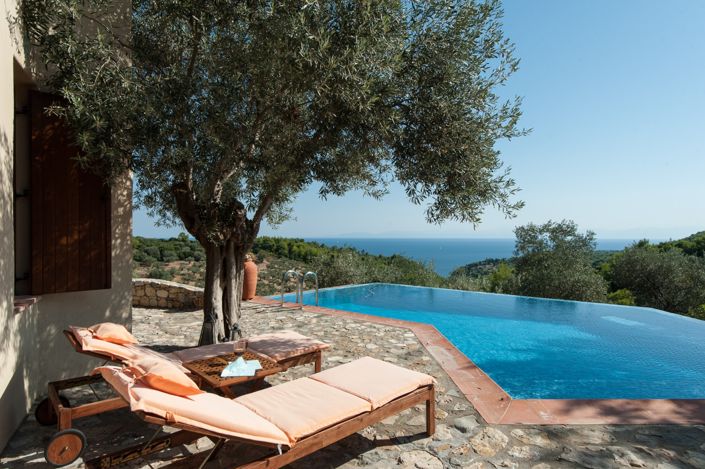 Located in an area with lush greenery and many olive trees, plus easy access to both beaches and the island port, this is a house with beautiful panoramic sea views, ideal for spending holiday time.