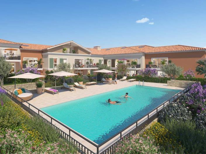 Ensoleilla is a new residence of 4 & 5 bedroom villas with optional pools and 1 to 3 bedroom apartments for sale in a quiet residential area offering views of the surrounding countryside along with a 5m by 15m shared swimming pool to enjoy on those long sunny days. The architectural design is inspired by traditional Provencal style and retain features such as exposed beams on the upper floor, ornate iron work and typical Provencal shutters. The gardens are filled with scented flowers, orange trees, olive trees and typical Mediterranean vegetation. Some of the comforts include heated towel rails, electric blinds in the living room and a space for a home office and additionally for the villas you can add air conditioning, a fireplace and a pergola as options. Use this as your main or second home or if you wish you can sign a rental mandate with Avecoeur who provide quasi hotel services and concierge for short term bookings. If you sign this mandate and rent your apartment out for at least a few weeks each year you will benefit from receiving back all the VAT included in your purchase price (20%) but also of course the rental income received less the commission. Avecoeur, in addition to property management are also developers, interior designers and mortgage brokers, making the group a unique one stop shop for property investors in France.