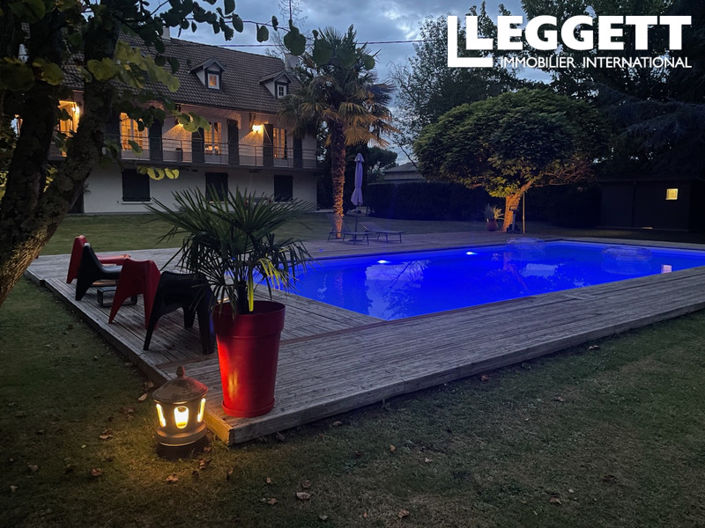 laundry room with shower. This space could be converted for a professional or other activity, gîte, family reunion. The landscaped exteriors are intimate and out of sight. A 12 x 5 heated saltwater swimming pool and summer kitchen area. A tennis court. A 150m2 hangar.
