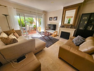 En entrant dans l'appartement, vous êtes accueilli par un hall lumineux et spacieux. Sur la gauche, vous trouverez une cuisine entièrement équipée avec des appareils modernes et un espace utilitaire pratique, idéal pour les besoins quotidiens. En continuant dans le hall, des toilettes séparées pour les invités ajoutent à la fonctionnalité de l'appartement. L'espace s'ouvre sur un grand salon et une salle à manger, où la lumière naturelle afflue depuis la terrasse couverte orientée à l'ouest. Cet espace de vie, avec son élégante cheminée, offre une ambiance chaleureuse pendant les mois d'hiver, tout en offrant suffisamment d'espace pour recevoir et manger. La terrasse elle-même comporte deux zones distinctes, parfaites pour les repas en plein air et un coin salon confortable où vous pourrez profiter des chaudes soirées andalouses.