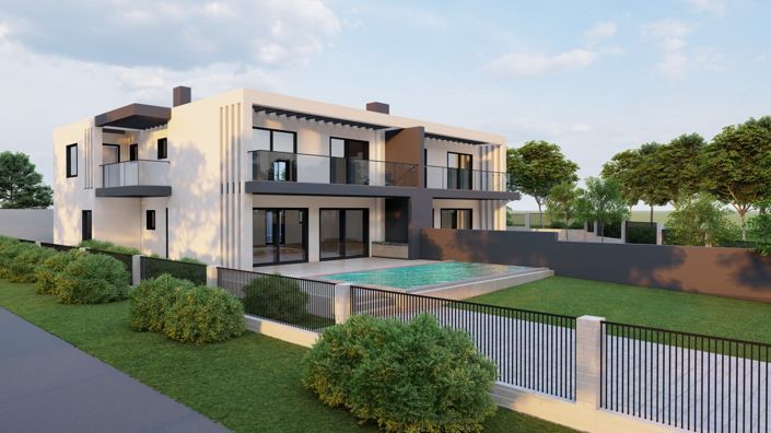 Un beau terrain orienté plein sud avec projet de construction de 2 nouvelles villas modernes semi-découpées avec 4 chambres avec vue sud sur la piscine et le jardin.