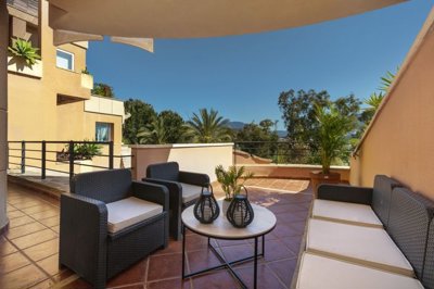 Appartement de 2 chambres entièrement meublé à Magna Marbella, bénéficiant dune vue sur la mer et les montagnes. Lappartement se compose de 2 chambres, 2 salles de bains, cuisine, salon-salle à manger avec accès à une terrasse. Magna Marbella est une communauté fermée avec sécurité 24 heures sur 24 avec jardin et piscine. Il y a un garage et un espace de rangement inclus.