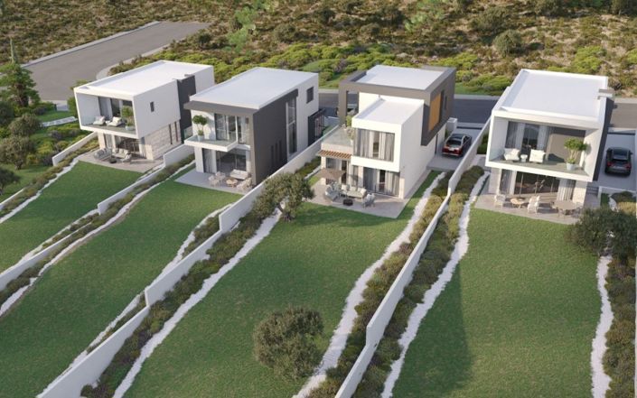 This collection of 17 2-storey houses offers a range of 3 and 4-bedroom residences, each boasting 4 bathrooms, sprawling across large plots of up to 850 sq.m. The properties feature optional roof gardens and overflow swimming pools, adding a touch of luxury to the serene landscape. The modern architectural approach blends the project seamlessly with the natural environment, creating spacious and efficient interior areas. The location is exceptional, providing unobstructed views of Pafos and the Mediterranean Sea from every single house. The village center is only 2 minutes away, offering convenience without compromising tranquility. Whether you seek an investment opportunity or your private residence, this is the ideal choice. Embrace a modern lifestyle that harmoniously integrates with the natural beauty of Cyprus, promising not just a home but an exclusive retreat with breathtaking views and easy access to village amenities.