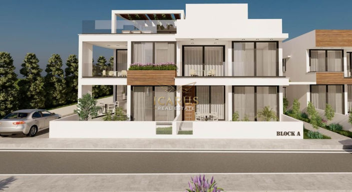 This modern 2-bedroom corner apartment, located in the peaceful area of Livadia, offers a comfortable and convenient living experience. Upon entering, you are greeted by a welcoming dining area, leading into an open-plan kitchen and living room, perfect for both relaxation and entertaining. The apartment features two spacious bedrooms, with the master bedroom benefiting from an en-suite shower. A family bathroom is also included for added convenience.