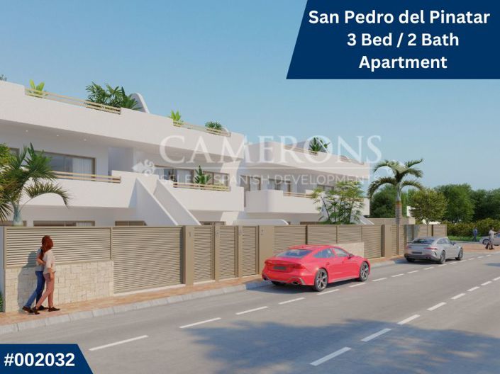 New project of 3 bed, 2 bath properties in San Pedro del Pinatar.These Ibiza-style apartments offer a unique blend of modern comfort and Mediterranean charm. With 3 bedrooms and 2 bathrooms, they are both elegant and functional. Ground floors with large terraces, east/west facing, equipped with a convenient laundry room and top-floor apartments with very spacious and sunny solarium.San Pedro del Pinatar is a charming Spanish town. The town is a haven for golfers with numerous golf courses nearby, while the Salinas nature reserve and the Mediterranean Sea are just a brief 5-minute drive away, providing breathtaking views and ample opportunities for outdoor activities.Murcia airport is just a 30 minute drive from San Pedro del Pinatar, while Alicante is less than an hour away, providing easy access to the rest of Spain and beyond.In addition to its beautiful natural surroundings, San Pedro del Pinatar offers a range of amenities and services that are easily accessible from these apartments.Shops and other daily necessities are just a short walk away, while the local golf courses can be reached in just 15 minutes by car.Whether you are looking for a holiday home, a year-round residence, or an investment property, these apartments offer an excellent opportunity to own a piece of paradise in one of Spain's most desirable locations.Don't miss out on the chance to make one of these exceptional villas your own and contact the Camerons team to arrange a viewing today.