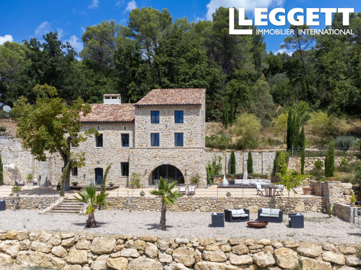 This stunning stone bastide is set in a peaceful location, offering breathtaking valley views and 7 hectares of private land and forest. The property features a spacious living area with a large open fireplace, five ensuite bedrooms, a wine cellar, and beautiful kitchen.
