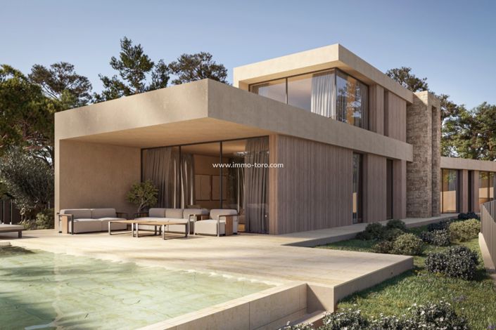 Projet de construction de Villa Moderne à vendre à Moraira sur la Costa Blanca d’Alicante en Espagne, construite sur un terrain de 885 m2 avec une superficie construite de 242,96 m2 de logement et 160 m2 de terrasses, répartie sur deux étages + sous-sol avec 3 chambres avec deux salles de bains en suite, des toilettes invités, un salon-salle à manger avec cuisine avec îlot, un grand porche extérieur, un sous-sol avec débarras, une salle des machines et une buanderie. Piscine d’une surface d’eau de 31 m2.