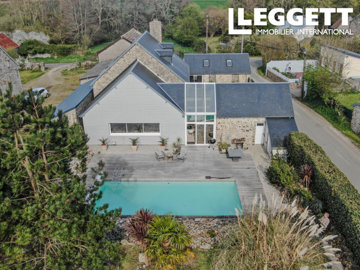 William Darwen and Leggett are proud to present this meticulously renovated home created from traditional Norman stone buildings, offering 277 m² of stylish living space. The property includes 4 bedrooms, 3 bathrooms, a spacious living room, a dining room with minstrel’s gallery, and a bright open-plan kitchen and dining area with access to both a courtyard and a heated pool with terrace. Perfect as a luxury holiday retreat or high-value rental investment, the house combines elegance with modern comfort. The village, restaurants, and sandy beach of Gouville-sur-Mer are just a couple of miles away, while Coutances with full amenities is less than 7 miles. Furniture is not included, but the owner is open to negotiation for those wishing to retain the exquisite interior styling. A rare opportunity to own a beautifully restored Normandy coastal property.
