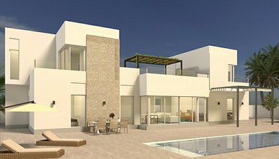 Contemporary design new build villa on two floors with 6 bedrooms and 4 bathrooms, on a 1.147m2 plot located in the Aguas Nuevas area of Torrevieja