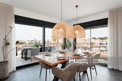 The area around the house gives you the best of both worlds – a quiet and safe coastal life while being close to the pulse of the city and services. Here you will find promenades, golden sandy beaches, tapas bars, restaurants, sports facilities and green natural areas. For those who appreciate golf, several courses are just a short drive away, and you can reach both La Zenia Boulevard, Cartagena and Murcia airport in about half an hour.