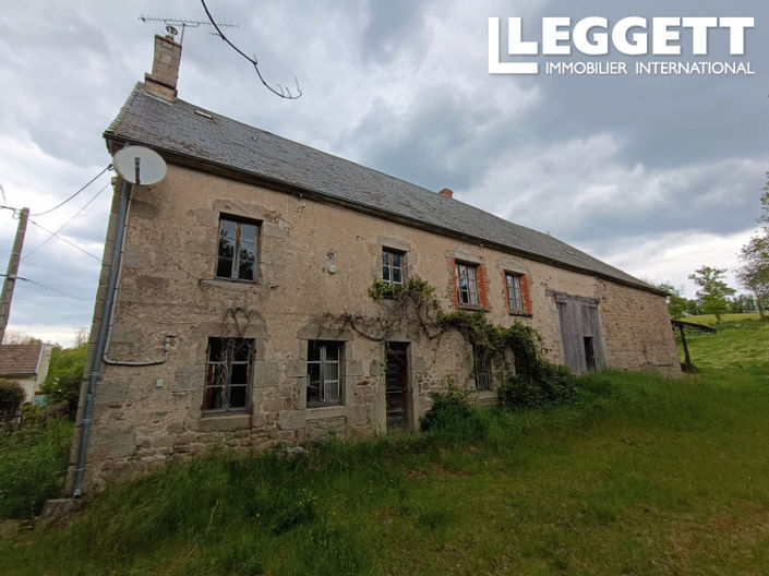 This 4 bedroom farmhouse needs a complete renovation including the roof. It has a large hallway, dining room with stone chimney, kitchen, bedroom, a bathroom and a separate toilet on the ground floor and 3 bedrooms and a convertible attic space on the first floor. Attached to the house is a huge barn with stable underneath. There is a second property to renovate (actually a ruin) and several independant outbuildings including a big hangar and a well. There is just under 1 hectare land, mostly adjacent to the property. The property is situated in a quiet hamlet at a few minutes drive from market town Auzances with all daily amenities, at approx 65 km from Clermont-Ferrand (international airport), 122 km from Limoges (international airport) and 73 km from Mont Dore (ski slopes, Puy de Dôme). In the Creuse, Limousin.