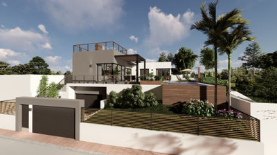 This contemporary and modern style villa is designed to enjoy an open, bright and fully integrated with nature. The villa is distributed on 1 level, with 3 bedrooms, 2 bathrooms and a toilet. The master bedroom has access to the terrace, thus extending the surface of the room to the outside.