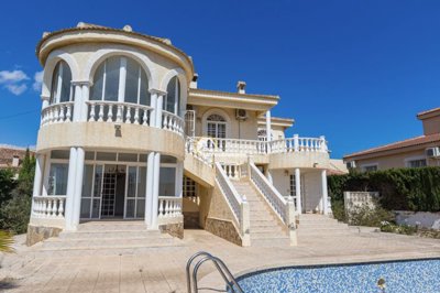 Cette imposante villa individuelle offre une taille de construction exceptionnelle sur deux étages. Le rez-de-chaussée offre une terrasse vitrée ensoleillée orientée au sud avec des portes coulissantes pour une véritable sensation intérieure/extérieure, menant à un espace de vie ouvert avec cuisine étendue, 3 chambres et une salle de bains complète. Des escaliers intérieurs et extérieurs donnent accès au deuxième étage qui offre à nouveau une grande terrasse vitrée avec des fenêtres panoramiques offrant une vue charmante sur les lacs salés de Torrevieja et La Mata grâce à sa position surélevée, un salon spacieux avec cheminée, 3 autres chambres (dont une avec accès à la terrasse ensoleillée) et la chambre principale avec salle de bains privative bénéficiant également d'un accès à la terrasse ensoleillée en plein air, plus une autre salle de douche pour les invités.