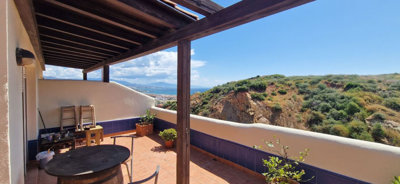 Magnifique penthouse en duplex situé dans l'un des quartiers les plus paisibles et bien desservis de Manilva, sur la Costa del Sol. Le bien, très peu utilisé et en excellent état, est idéal comme résidence principale, secondaire ou investissement. Son orientation est-ouest garantit une lumière naturelle toute la journée et une ventilation traversante agréable toute l'année.L'appartement se répartit sur deux niveaux. Le niveau principal comprend un spacieux salon de 29 m² avec accès à une terrasse de 11 m², parfaite pour profiter du climat méditerranéen. La cuisine est indépendante, entièrement équipée, avec un espace buanderie. Deux chambres doubles avec placards intégrés et deux salles de bains complètes complètent ce niveau. À l'étage supérieur, une troisième pièce de 19 m² peut servir de chambre principale, de bureau ou d'espace polyvalent, donnant accès à une spectaculaire terrasse périphérique de 84 m² avec deux pergolas et des vues imprenables sur la mer, le golf, les montagnes et les villages voisins comme Sabinillas, Casares, Estepona et Manilva.Une grande place de parking de 16,5 m² au premier sous-sol ainsi qu'un débarras de 10 m² sont inclus dans le prix. Le logement est équipé de la climatisation LG avec pompe à chaleur dans toutes les pièces. La résidence dispose d'espaces verts et d'une piscine communautaire, dans un cadre idéal pour profiter du mode de vie méditerranéen.L'emplacement est particulièrement pratique : à seulement un kilomètre du port de La Duquesa et de la plage de Sabinillas (3 minutes en voiture ou 15 à pied), à 5 minutes de Sabinillas, 6 minutes de la plage de Chullera et à moins de 20 minutes d'Estepona et Sotogrande.Le bien est prêt à emménager, avec les services d'électricité et d'eau en ordre. Un logement de caractère, spacieux et avec des vues exceptionnelles dans un cadre privilégié de la Costa del Sol.
