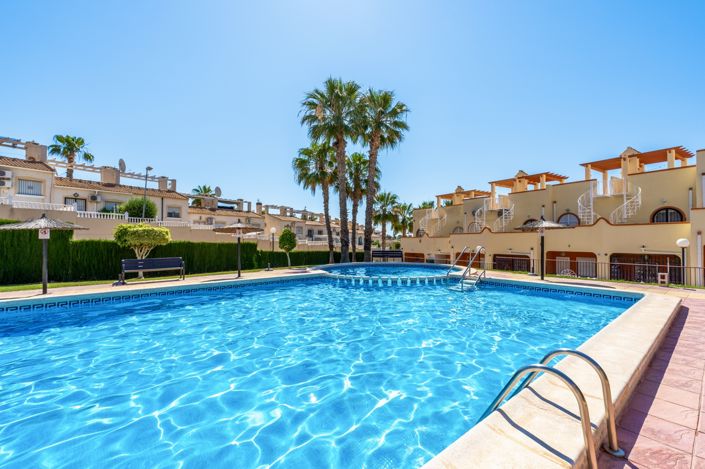 Perfectly located in the heart of Villamartin, this beautifully renovated townhouse offers the ideal combination of comfort, convenience, and Mediterranean charm. With 2 spacious bedrooms and 2 modern bathrooms, it’s perfectly suited for year-round living, a holiday retreat, or a rental investment. The property boasts fantastic outdoor spaces, including a private roof terrace and two ground floor terraces facing different directions — perfect for soaking up the sun or enjoying al fresco dining at any time of day. Set within a well-kept community, residents can relax by the attractive communal pool, surrounded by lush gardens. All essential amenities are within walking distance, including popular commercial centres, Villamartin Golf Course, a wide selection of restaurants, shops, and services, placing you right in the heart of everything while still offering a peaceful, residential setting.