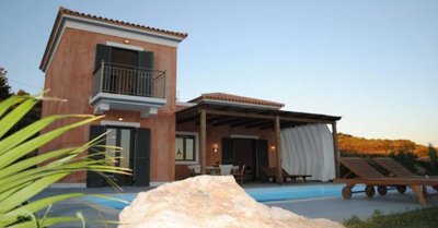 Located in a privileged and serene location, just minutes from the picturesque village of Klismata, this exceptional 120 sq.m. detached villa is available for sale, built to high standards within a lush 2.000 sq.m. estate. The residence enjoys breathtaking, unobstructed views of the Ionian blue, offering the ideal sanctuary for those seeking absolute tranquility in harmony with nature. Designed on a single level (ground floor) to ensure comfort and functionality, the interior comprises an impressive open-plan living and dining area with a fireplace, a fully equipped kitchen of modern aesthetic, as well as three spacious bedrooms-including a master suite with an en-suite bathroom-and an additional elegant family bathroom. The airy design and large openings in every room allow natural light to flood the space, enhancing the sense of luxury and openness. The outdoor area is the "crown jewel" of the property; a meticulously landscaped garden with rich flora and tasteful paving surrounds an impressive private swimming pool, creating the perfect setting for relaxation and outdoor activities. The property features full air conditioning, aluminum window frames with double glazing, and ample fenced parking space. Situated in the highly sought-after area of Leivathos, the villa combines traditional architecture with immediate access to some of the island's most iconic beaches, being just 400m from the sea, 9 km from the airport, and 12 km from Argostoli. Due to its strategic position and premium amenities, it represents a rare opportunity for both a private residence and a high-yield investment in Kefalonia's tourism market.