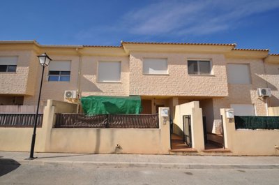 This spacious 213m² townhouse in Pinoso offers plenty of natural light and comfortable living spaces. The entrance features a covered porch, leading into a large living room. The home includes four generously sized bedrooms and three bathrooms, making it ideal for families or those who need extra space. The kitchen is well-sized, providing ample room for cooking and dining. A small patio adds a private outdoor area, while the garage offers secure parking and additional storage. This property is a great opportunity for those looking for a bright and spacious home in a convenient location.If you liked this property, do not hesitate to contact us to organize a visit, we will be happy to help you!