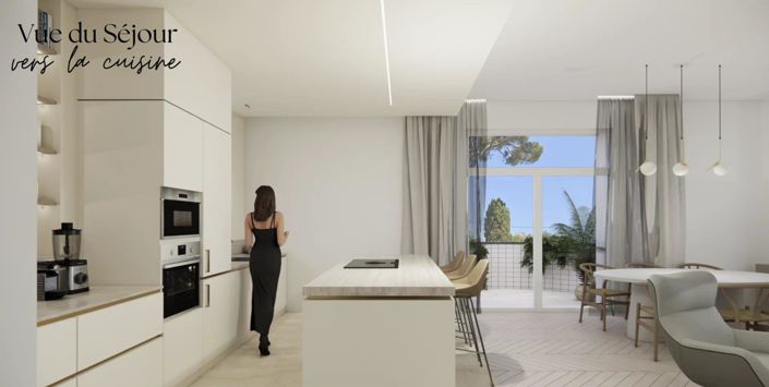 L’appartement comprend un salon élégant avec cuisine ouverte, un coin bureau dans un grand et lumineux hall d'entrée, quatre chambres dont une suite parentale avec dressing, deux salles de bains modernes et un grand balcon pouvant accueillir confortablement une table pour quatre. Un garage et une cave complètent ce bien d’exception.