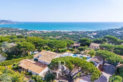 Nichée dans un environnement paisible et recherché, à proximité des plages et du centre-ville de Sainte-Maxime, cette élégante villa de 260 m² offre une belle vue sur la mer.