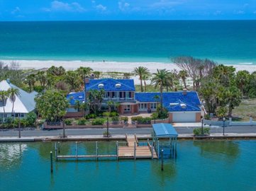 Nestled in the coveted, gated 11-home community at the north end of Clearwater Beach, 1114 Mandalay Point offers a truly rare chance to own one of the most extraordinary waterfront properties on Florida's Gulf Coast. Spanning over an acre, this estate delivers full Gulf-to-Bay frontage - 140 feet on the beach side and 137 feet on the bay side - providing unmatched panoramic views of both sunrise and sunset. Stroll down the private road for dinner at the Carlouel Beach & Yacht Club - or go by boat. This property is a boater's dream, offering 8-10 feet of protected deep-water dockage and a covered boat slip with quick access to the Intracoastal Waterway and Gulf of Mexico. Dockage will accommodate a 70 + foot yacht.