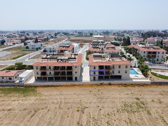Apartment part of a complex with common pool for sale in Kiti area. It is on the first floor & consists of an open plan kitchen, living, dining area, covered balcony, a main bathroom, two bedrooms-master bedroom en suite (shower) and with balcony access. In addition, the property has access to a covered parking and storage room. Internal covered area of the apartment is 73 sqm and the covered balcony 10 sqm.