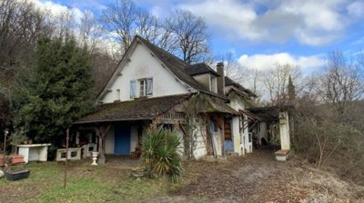 Maison dâhabitation individuelle des années 80, de type 5, de construction traditionnelle offrant de plain-pied : couloir desservant une cuisine, un salon avec cheminée / insert, une chambre, une salle dâeau, un Wc, une terrasse couverte sur pignon ouest et de deux ateliers sur pignon est flanqués dâun appentis à lâétage : palier, couloir desservant une chambre, un bureau, une salle dâeau / Wc et un atelier de peinture. La maison est implantée à flanc de colline, en situation isolée et calme avec vue dégagée au sud. Importants travaux de rénovation à prévoir.
