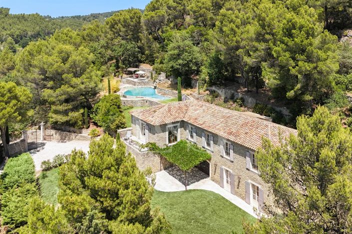 Le terrain en restanques d’environ 6 000 m2, entièrement clos, se distingue par son harmonie entre jardin paysager, zone boisée de chênes et de pins, et différentes terrasses propices à la détente. A l'écart, la piscine à débordement de forme libre, avec plages aménagées et terrasse couverte, offre un cadre enchanteur pour profiter des couchers de soleil.
