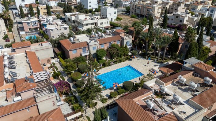 This well-maintained project is located in one of the most desirable areas of Paphos – Universal. Within walking and short distance from the project there are shopping areas, Kings Avenue Mall, schools and universities, city centre and beaches of Pafos. The property has an open plan large living/dining areas and a kitchen. Patio doors from the living area lead out to a good sized veranda and yard, there is also access to the communal swimming pool of the project, Guest WC Upstairs there are 3 large double bedrooms with fitted wardrobes and balconies with pool and town views and a family bathroom. Covered parking available. The townhouse is in an excellent condition.