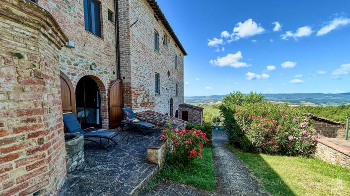 Located within a charming hamlet, just 1 km from Monteleone d’Orvieto, a renovated apartment for sale with a private courtyard and panoramic views. Nestled within a picturesque setting just 1 km from the medieval town of Monteleone d’Orvieto, 10 minutes walking distance, this finely restored apartment offers a serene retreat in the heart of the Umbrian countryside. A typical country lane winds through the verdant landscape up to a carefully restored rural borgo divided into several independent units. Situated in a discreet position on the ground floor of an authentic brick building, the apartment perfectly blends the timeless charm of Umbrian architectural traditions with contemporary comforts, providing ready-to-live-in accommodation. Spanning approximately 82 square meters on a single level, the home has been thoughtfully renovated to preserve original features such as terracotta flooring, exposed stone walls, and wooden beam ceilings. An elegant arched doorway opens into a spacious open-plan living area, featuring a cosy sitting room complete with a wood-burning stove and stunning stone and brick detailing. The dining area enjoys direct access to the outdoors, while the kitchen is designed with a central island, ideal for both everyday living and entertaining. To one side of the living space lies a well-appointed bathroom with shower, and to the other, a generous double bedroom. The enchanting private courtyard frames breathtaking views over the rolling countryside, with a paved terrace perfect for alfresco dining or peaceful relaxation. Completing the property is a separate utility room with independent access. This residence offers an ideal second home, inviting you to savour the timeless beauty of Umbria in an authentic and atmospheric setting. PROPERTY Ref: MNT3323Location: Monteleone d’Orvieto, Province: Terni, Region: UmbriaType: 82 sq m/882 sq ft ground floor apartment with private courtYear of construction: 1700Year of restoration: 2012Conditions: excellentGarden: 40 sq m/430 sq ft private courtyardLayout: Ground Floor: open-plan living area with kitchen, 1 double bedroom, 1 bathroomDistance from services: 1 kmDistance from main airports: Perugia 50km, Roma Fiumicino 170 km, Florence 150 kmGravel road: 40 mtUtilities: Fixed telephone network: available; Internet: available; Heating: methane + 1 stove; Water: mains city supply; Electricity: available; Water waste: mains city connectionThe property is owned by a private individual. The location, for privacy, is approximate. Please note all measurements cited are approximateEnergy Efficiency Rating: GApolloni & Blom RE conducts technical due diligence with the owner's technician to have a full report on each property's urban and cadastral state of the art. The due diligence may be requested by clients showing a strong interest in the property