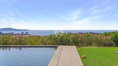 À quelques minutes de la plage, jolie villa rénovée avec une vue harmonieuse sur la mer et la cap Lardier, dans un domaine calme et recherché.