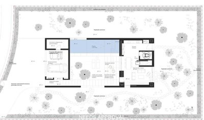 A project for a modern 3-bedroom villa with a pool and garage has already been approved in the past. The new buyer can now renew modify this project according to their own wishes and resubmit it to the building authorities for new aproval.