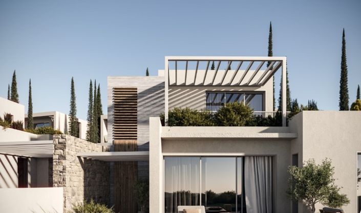 Private Residences offer an exceptional lifestyle in Peyia, perched on a hilltop with panoramic views of the Mediterranean countryside and sea.