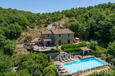 Cette magnifique ferme à vendre, entièrement restaurée, est un véritable bijou ! Construite à l'origine au XVIe siècle, elle se dresse majestueusement à flanc de colline, immergée dans un paysage varié et époustouflant de collines ondulantes et de bois. La propriété jouit d'une position privilégiée avec vue sur la pittoresque Valle di Chio et les collines environnantes, ainsi que sur la ville médiévale de Castiglion Fiorentino, qui s'enorgueillit d'une riche histoire en tant que carrefour stratégique entre Cortona et Arezzo.