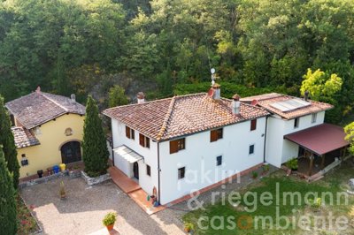 En partant de Florence en direction de Bagno a Ripoli, en empruntant une petite route qui s'enfonce dans les collines, on passe devant quelques maisons et on arrive à cet ancien domaine composé de deux bâtiments rénovés, d'où l'on jouit d'une large vue vers l'est sur le massif du Pratomagno.