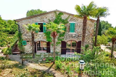 Dans la campagne de Sassetta, à proximité des thermes et à 20 minutes de la mer, cette ferme en pierre est située sur un terrain légèrement vallonné de 6,3 ha, comprenant des oliviers (environ 690 arbres), des terres arables et un jardin naturel avec un lac biologique. L'environnement est calme, entouré par la nature et offre une intimité sans être isolé.
