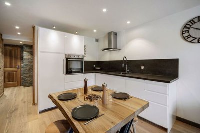 Vendu meublé, il comprend également une place de stationnement intérieure, une cave et un casier à skis.