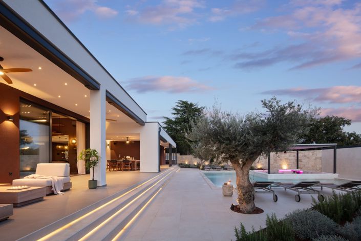 Elegant Villa with Premium Amenities Near Rovinj, CroatiaLocated just 11 kilometers from the Adriatic Sea and minutes from the heart of Rovinj on the western coast of Istria, this newly built modern villa offers a luxurious lifestyle in one of Croatia’s most desirable regions. Rovinj is renowned for its narrow cobblestone streets, colorful facades, vibrant harbor, and rich cultural and culinary scene. With abundant sunshine, pristine nature, and crystal-clear waters, it is a destination that combines relaxation, inspiration, and authentic Mediterranean charm.The villa is set on a 954 square meter land plot and features 200 square meters of elegant, single-story living space. It is just a four-minute drive from the scenic Limski Kanal and connected to Rovinj via a 12-kilometer cycling path built on a former railway line—ideal for exploring the area in a peaceful and eco-friendly way.Inside, the villa is designed with open-concept living in mind. A spacious living room, dining area, and fully equipped kitchen flow together in a bright, sun-filled space with large sliding glass walls that open onto a luxurious terrace. This seamless transition between indoors and outdoors creates a natural connection with the surrounding environment.There are three high-end bedrooms, each with a private en-suite bathroom, plus an additional guest toilet for convenience. The entire home features underfloor heating, while a heat pump and solar panels ensure excellent energy efficiency. A smart home system allows centralized control of lighting, climate, and more.The exterior is equally well-appointed. A heated L-shaped swimming pool with a sun deck, a jacuzzi on the terrace, a covered outdoor lounge, and a summer kitchen with grill and dining area under a pergola make this an ideal place for relaxation and entertaining. An outdoor fireplace creates a warm, inviting ambiance during cooler evenings. The property also offers three private parking spaces and a charging station for electric vehicles.This villa is more than just a home—it is a thoughtfully designed retreat where contemporary architecture, comfort, and nature come together in perfect balance, just minutes from the cultural and coastal beauty of Rovinj. Ref: RE-U-41384Overall additional expenses borne by the Buyer of real estate in Croatia are around 7% of property cost in total, which includes: property transfer tax (3% of property value), agency/brokerage commission (3%+VAT on commission), advocate fee (cca 1%), notary fee, court registration fee and official certified translation expenses. Agency/brokerage agreement is signed prior to visiting properties.