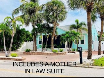 Completely updated and charming 1936 2/1 beach cottage with a separate Mother-In-Law cottage (Studio apt) in the back. Property is only 5 blocks to our award winning beaches. Elegant landscaping & new pavers for the circular driveway done 2016. Beautiful original wood flooring in the cottage which has double pane windows, 2020 roof, an additional patio w/outside shower and a backyard. This cozy cottage has a large laundry room w/access to a fenced private patio & another door to the backyard. Living room has the original wood burning fireplace for those cool winter nights. Dining room has built in shelves/drawers. Relax on the screened front porch and enjoy the quiet neighborhood or reside to the patio out back that's great for entertaining. Mother-In-Law unit & cottage has plenty of windows to let the sunshine in & the sea breeze flow through. Mother-In-Law unit has 1 full bathroom, full kitchen, mini-split AC unit, vaulted beadboard ceiling/walls & a covered porch. Circular driveway also goes to the backyard which has a gate & is fully fenced. There are small parks with sitting areas 1 block down at 76th & 77th Avenues on the Intracoastal waterway to watch boats traverse the Gulf of Mexico while enjoying the birds soar & the dolphins play (great fishing too!). Fantastic location surrounded by restaurants, community center, downtown St Pete Beach w/library, post office, theater & city hall. St Petersburg, Gulfport, Tampa & International Airports are EZ drives. Whether you want to make this your own humble abode, investment or work/live space this property has it all!
