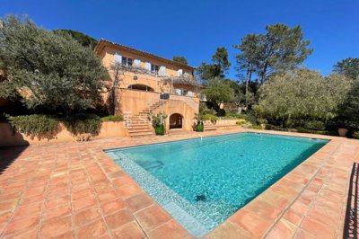 Vente villa Le Plan de la Tour. Niché dans un écrin de verdure, superbe villa d'env 180m² habitables édifiée sur une parcelle de 2400m². Avec une belle vue dégagée sur les collines, elle dispose : Hall d'entrée, vestiaire et wc invités, séjour cheminée, salle à manger, cuisine us équipée et grande chambre avec salle d'eau. À l'étage : 2 chambres dont une avec salle de bains et douche, et salle d'eau avec wc. Pool house avec cuisine d'été. Chambre indépendante avec salle d'eau et wc. Une piscine chauffée agrémente le jardin joliment arboré.