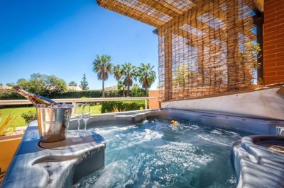 THIS BEAUTIFULLY PRESENTED HOME FEATURES TWO SPACIOUS BEDROOMS AND TWO MODERN BATHROOMS, DESIGNED WITH COMFORT AND STYLE IN MIND. THE BRIGHT LIVING AND DINING AREA CONNECTS SEAMLESSLY TO A PRIVATE TERRACE, COMPLETE WITH A JACUZZI AND A WELL-KEPT 50 M² GARDEN PERFECT FOR OUTDOOR RELAXATION AND ENTERTAINING.