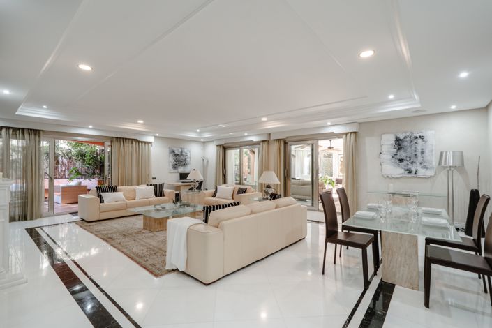 Exclusive ground-floor apartment in one of Marbella’s most prestigious beachfront communities. This elegant property offers direct beach access, privacy and panoramic sea views, just steps away from Puerto Banús marina, luxury boutiques and fine dining.