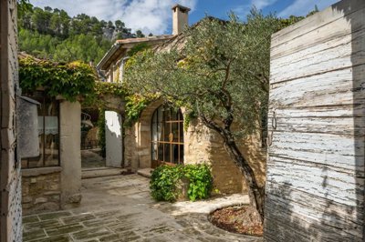 A l'intérieur, des caractéristiques d'origine telles que les plafonds provençaux, les poutres apparentes et les éléments en pierre ont été soigneusement préservés, tandis que des rénovations réfléchies réalisées avec des matériaux de qualité apportent chaleur et confort moderne.