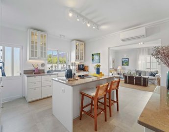 À lintérieur, la villa dispose dun salon et dune salle à manger ouverts et lumineux, ainsi que dune cuisine moderne équipée dun îlot central et dappareils électroménagers de qualité. Les cinq chambres sont spacieuses et les salles de bains récemment rénovées, avec un design épuré et élégant qui rehausse le quotidien. La propriété est prête à emménager, avec une disposition idéale pour les grandes familles ou les invités.